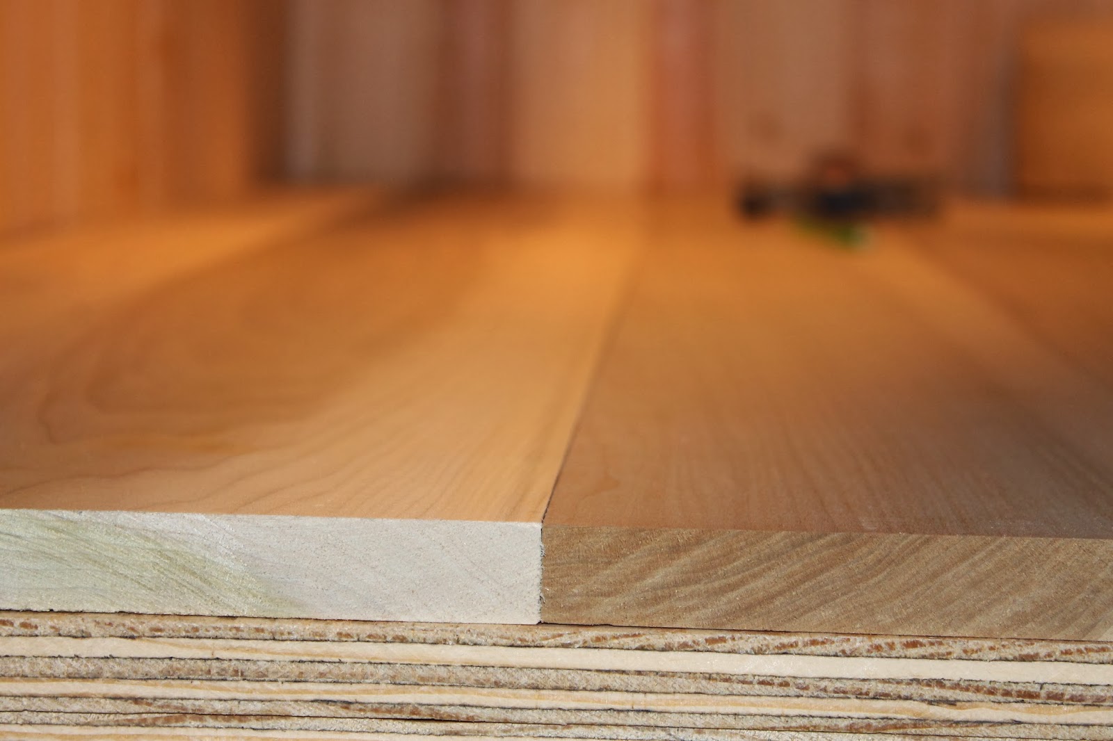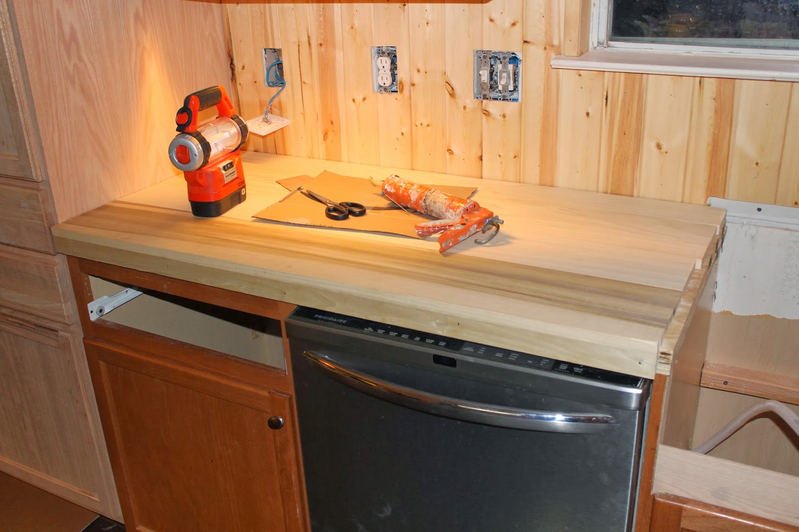Next we installed a piece of plywood to be the base of the counter, all the wood would sit on top of this.