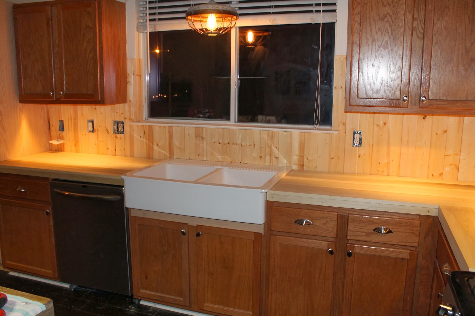 The other counters came out about the same, we used one long board, split in two, for two counter areas. The island had to be one long board. About $185 for the rest of the counters, including the pine edging, and the top trim piece to finish it of next to the back splash.