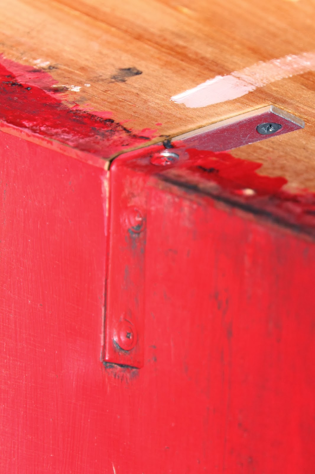 So this stuff is stinky, and I mean REALLY stinky. I again, used a foam brush, and coated the surface with one thick coat. Once it's on, its important not to touch the areas again. They will all bleed together, and soak in.