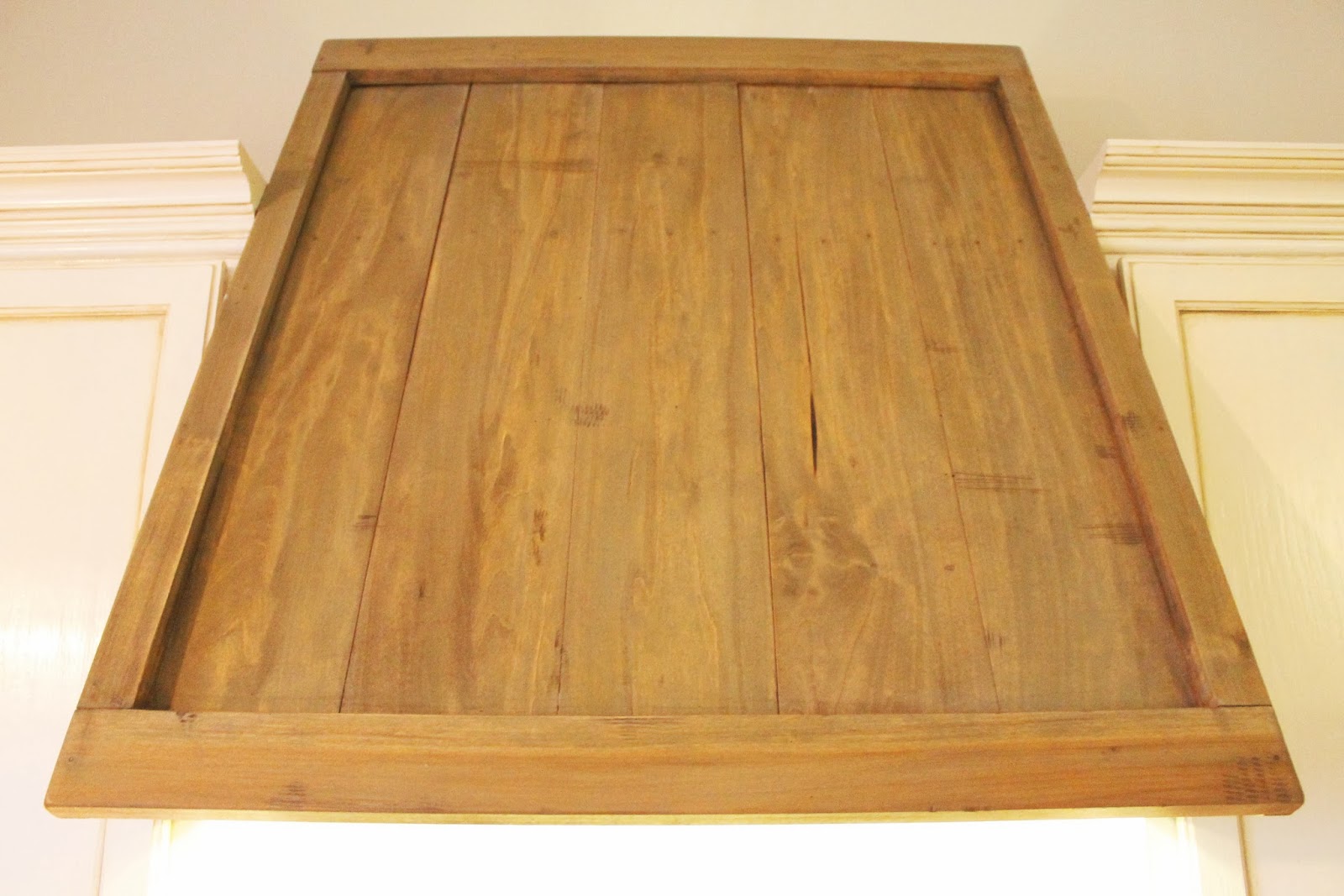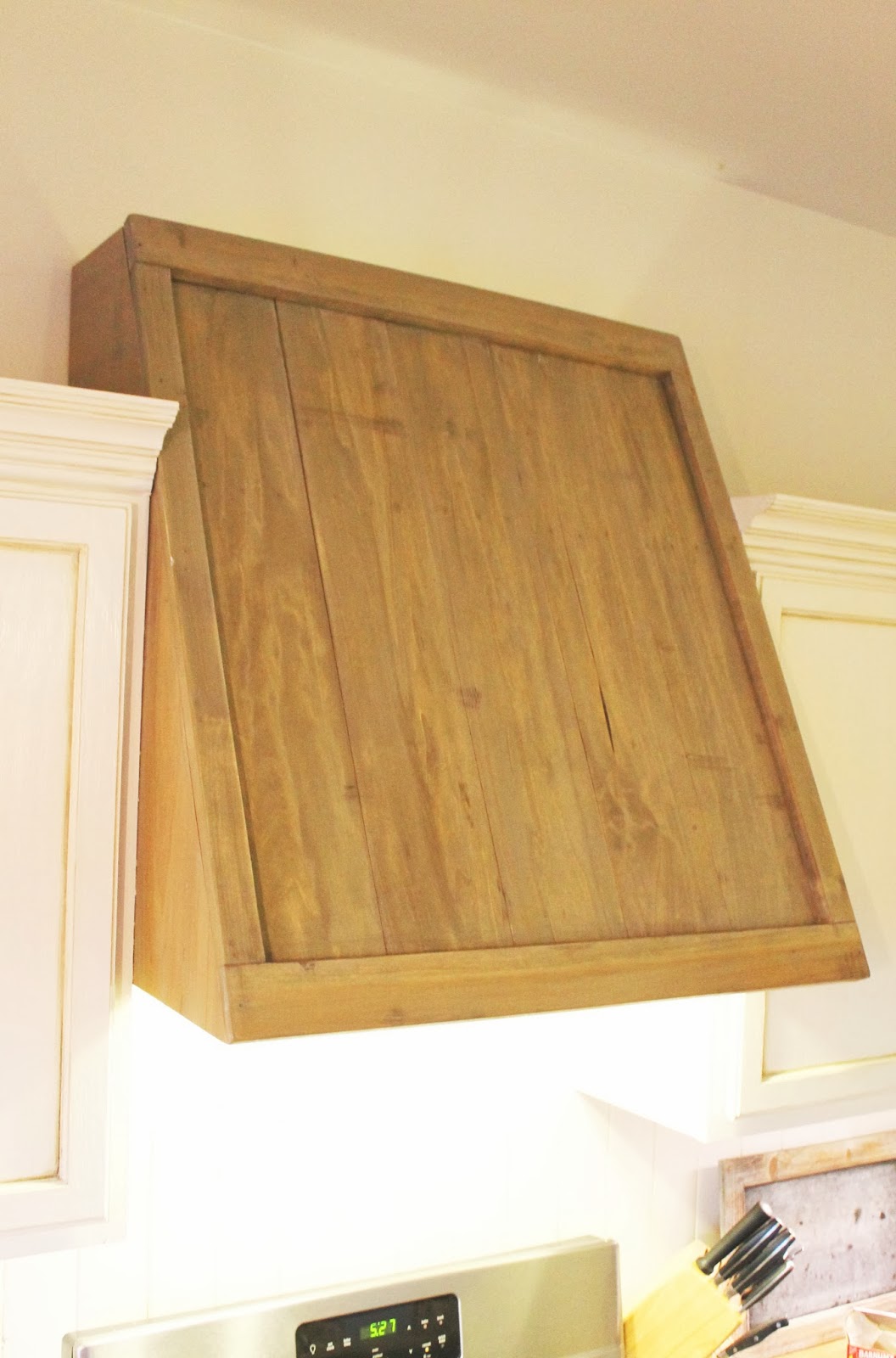 We loved the look of reclaimed wood. I found some old barn wood, but it needed to be planed at least 1-2 times, and I felt like it looked like brand new wood afterwards, so what was the point? The only logical option seemed to be, to use new wood and make it look old. Between me and my husband we knew we could pull it off. We started with the island, and vent hood, as a test run, since it was a smaller area.
