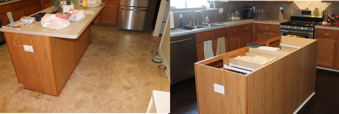 To start with, we had to get rid of the beautiful burned, and stained laminate counter tops.