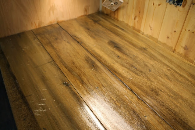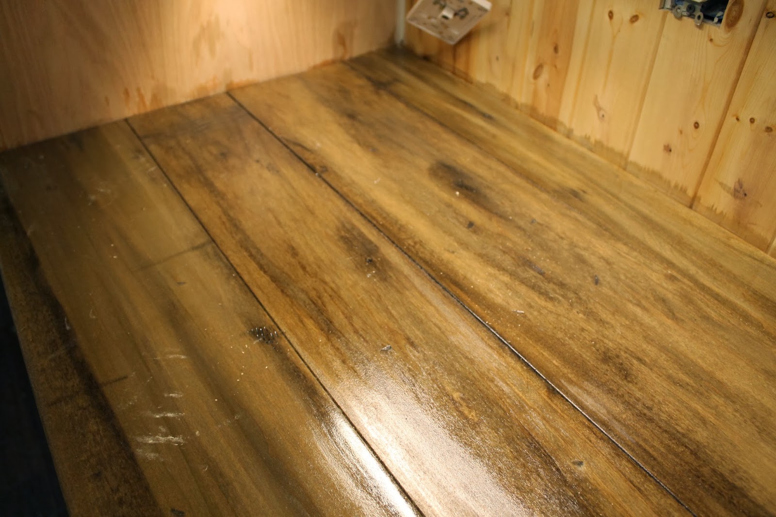 Just staining alone isn't enough to bring this out. I went over some areas more than once. Some times even letting alot sit in one area. Since the underneath was still wet, it helped it to bleed. If you do this first, or after it has completely dried, the color will take to heavy in each area. The seams got a heavier coat as well to give the separation between boards.